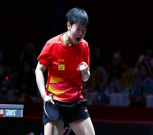 “我喜歡乒乓球,好像就是因?yàn)槲液芟矚g打乒乓球。”訓(xùn)練縱然疲憊且枯燥,但孫穎莎始終樂(lè)在其中。純粹的熱愛(ài)驅(qū)動(dòng)著她,也轉(zhuǎn)化為她在賽場(chǎng)上永不言敗的體育精神。無(wú)論是2024年釜山世乒賽女團(tuán)決賽中,在國(guó)乒1:2落后日本時(shí)獨(dú)砍兩分實(shí)現(xiàn)逆轉(zhuǎn),還是去年WTT中國(guó)大滿(mǎn)貫女單決賽中,濕透的汗水在椅背上拓出“CHINA”印記的瞬間,“孫穎莎精神”都在激勵(lì)著賽場(chǎng)之外的無(wú)數(shù)普通人。