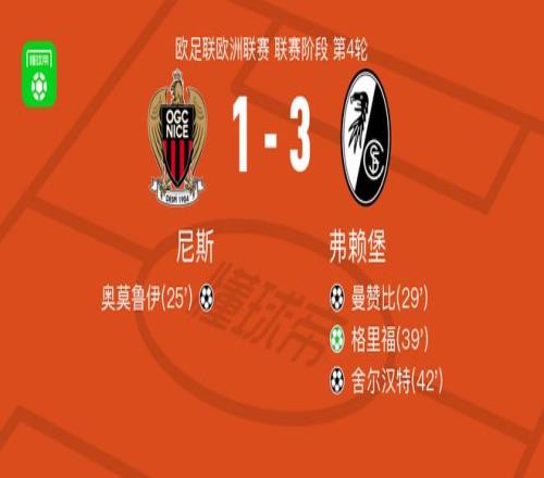 弗賴堡31逆轉(zhuǎn)尼斯,格里福點(diǎn)射、舍爾漢特破門 懂球帝 2025-11-08 22:01:16 北京時(shí)間11月7日歐足聯(lián)歐洲聯(lián)賽 聯(lián)賽階段 第4輪,尼斯對陣弗賴堡。尼斯奧莫魯伊破門。弗賴堡曼贊比破門,舍爾漢特破門,格里福破門。最終比分尼斯 1-3 弗賴堡。精彩瞬間第25分鐘,尼斯球員瓦努特助攻奧莫魯伊打入一球。第29分鐘,弗賴堡球員鈴木唯人助攻曼贊比打入一球。第39分鐘,弗賴堡球員格里福罰入點(diǎn)球。第42分鐘,弗賴堡球員金特爾助攻舍爾漢特打入一球。球隊(duì)陣容技術(shù)統(tǒng)計(jì)尼斯隊(duì)免費(fèi)觀看_格里福免費(fèi)觀看_金特爾免費(fèi)觀看_尼斯隊(duì)高清在線_格里福高清在線_金特爾高清在線 尼斯隊(duì) 格里福 金特爾 弗賴堡隊(duì) 舍爾漢特 歐洲杯揭幕戰(zhàn) 上一篇: 斯基拉:利物浦正計(jì)劃與索博斯洛伊續(xù)約至2030年或2031年 下一篇: 貝爾戈米:國米目前能保持全場施壓,并更會(huì)合理利用犯規(guī)戰(zhàn)術(shù)