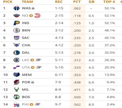 更讓人脊背發(fā)涼的是下面這張圖,如果今日開啟NBA選秀樂透抽簽,雷霆甚至可能收獲三個(gè)明年的樂透簽——分別來自快艇、爵士和76人。