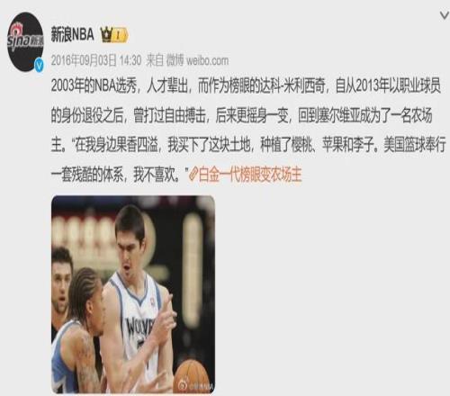 卡爾·馬龍喜歡當(dāng)農(nóng)場(chǎng)主,米利西奇也回到了塞爾維亞種蘋果,大家都有光明的未來。