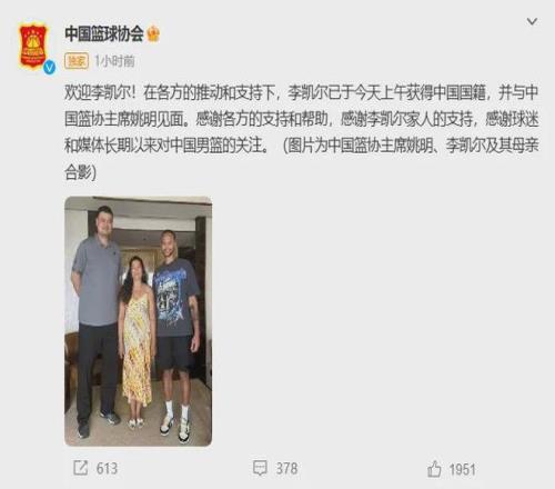 包括其經(jīng)紀公司回應稱,不排除李凱爾未來繼續(xù)為國征戰(zhàn)、或者來打CBA的可能性。