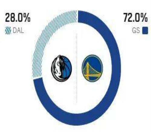 美媒ESPN預(yù)測(cè)本場(chǎng)比賽,勇士勝率為72%,獨(dú)行俠勝率為28%。