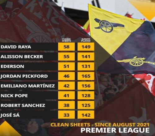 據(jù)統(tǒng)計(jì),拉亞于2021年8月完成英超首秀,這名西班牙門(mén)將在149場(chǎng)聯(lián)賽中完成58次零封,這是英超門(mén)將同期最佳成績(jī)。
